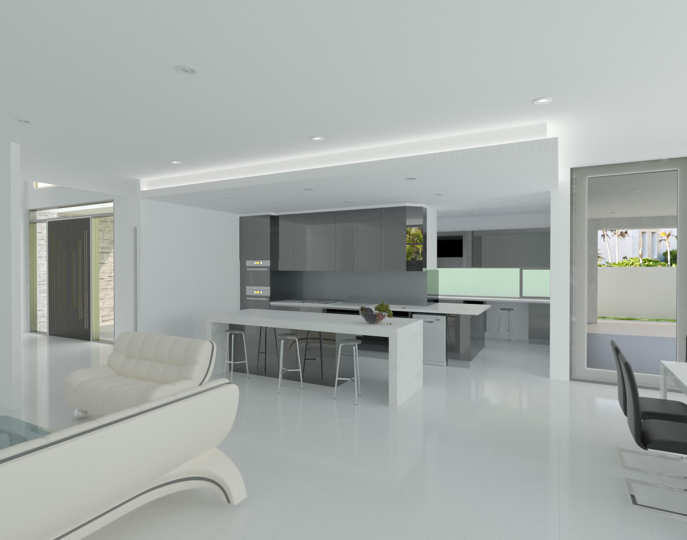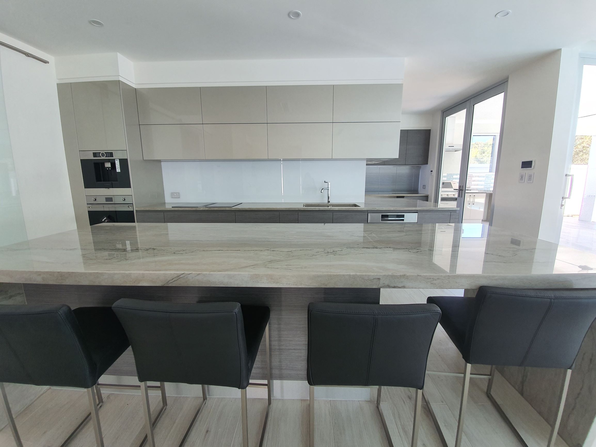 A Spectacular and welcoming entrance featuring a 6m High void, along with a massive feature stone wall and a glass sliding door leading into the open areas. Follow the natural flow through the designer kitchen, an open butler’s kitchen leading into the dining and living space, opening out into the alfresco entertaining area.